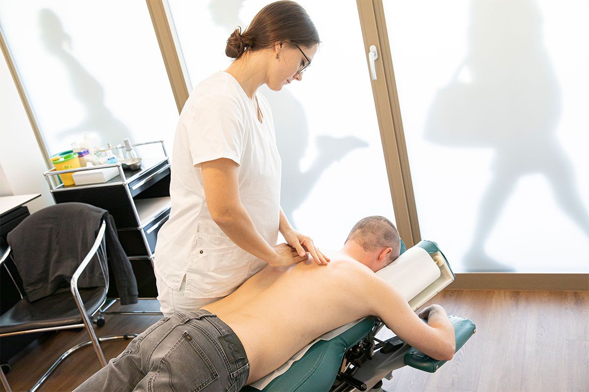 Die chiropraktische Behandlung besteht meistens aus der sogenannten Impulsbehandlung, bei der mit einem schnellen und präzisen Handgriff das blockierte Gelenk therapiert wird. Dabei entsteht meist der typische «Knacks», der ohne grossen Kraftaufwand und schmerzfrei ist. Dabei wird das blockierte Gelenk leicht über seine normale Beweglichkeit hinaus bewegt, ohne dass Gelenkkapsel, Bänder oder Weichteile verletzt oder beeinträchtigt werden. Damit kann die Gelenksfunktion sofort oder mit einer gewissen Verzögerung wiederhergestellt werden. Begleitend stehen auch andere Behandlungsmöglichkeiten zur Verfügung (z.B. Dry Needling, Neuraltherapie, Ultraschall, Elektrotherapie, usw.)